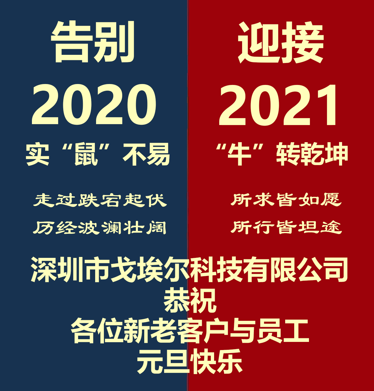 在此,深圳市戈埃爾科技有限公司全體同仁預祝大家在新的一年里:祝大家身體健康,闔家歡樂,祝您事業萬事順意,牛氣沖天!